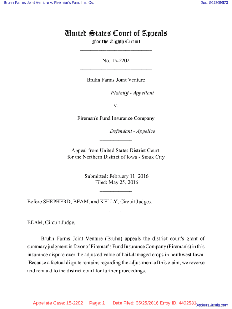 Get the free Bruhn Farms Joint Venture V. Fireman's Fund Ins. Co.