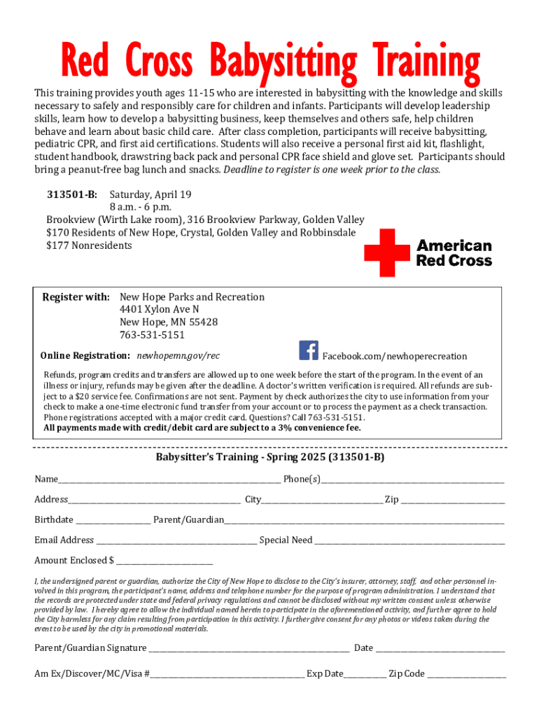 Edit your red cross babysitting training form online
