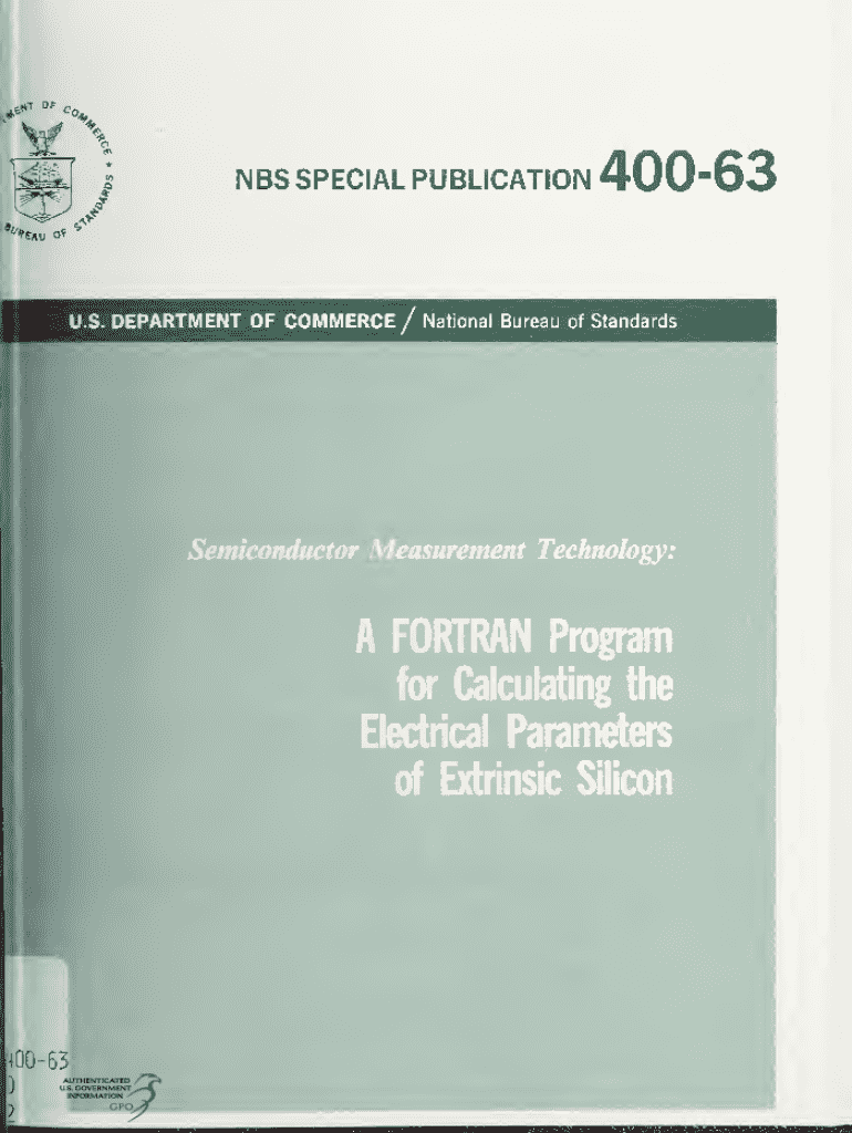Get the free Nbs Special Publication 400-63