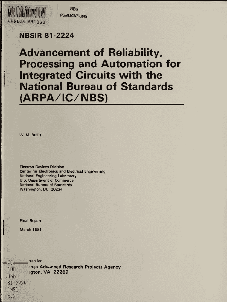 This document outlines the program undertaken by the National Bureau of Standards to develop measurement technology aimed at enhancing the reliability, processing, and automation of integrated circuits.