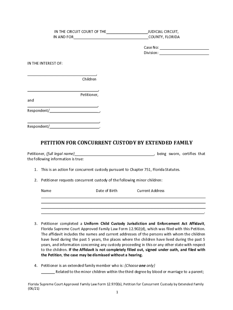 How to fill out petition for concurrent custody?