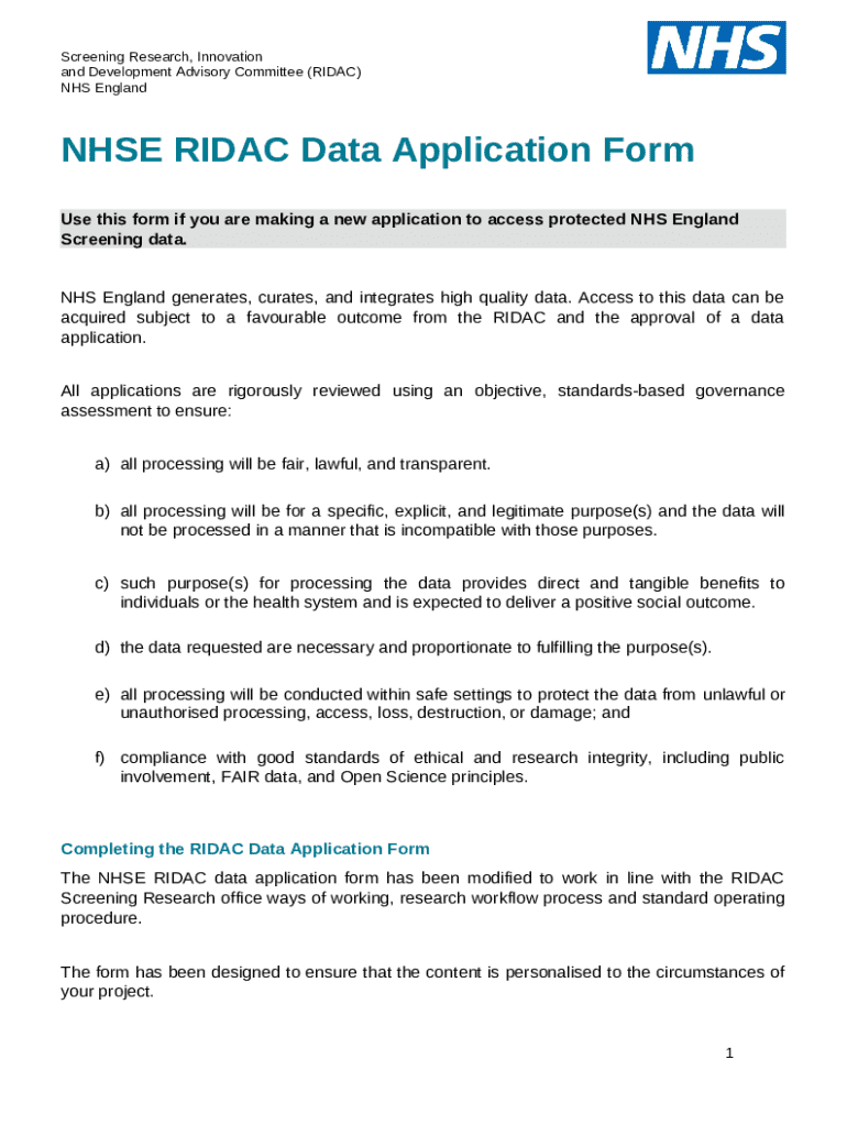 Comprehensive Guide to the NHSE Ridac Data Application Form