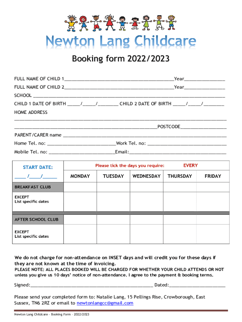 The booking form 20222023 serves as a critical tool for organizing various events and services. This form is designed to collect essential information from users, ensuring a seamless booking experience for individuals and teams alike. With a structured layout, it facilitates easy transactions, whether for educational workshops, events in schools, or other organized activities.