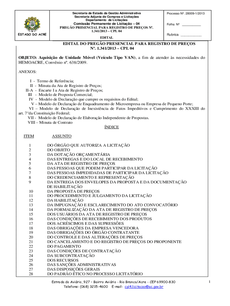 Obtenha o gratuito OBJETO: Aquisio de Unidade Mvel (Veculo Tipo VAN), ...