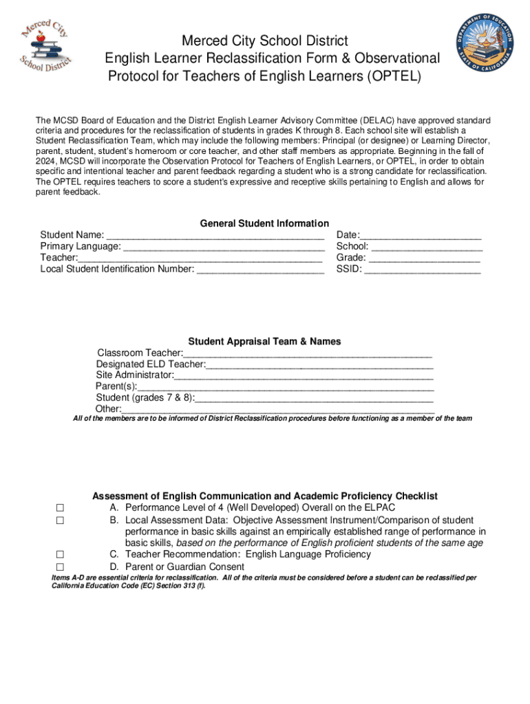 Understanding key terminology is essential when navigating this process. English Learner (EL) refers to students who are non-native speakers of English yet are in the process of becoming proficient. Reclassification criteria might include specific performance benchmarks across language domains as well as academic assessments to evaluate readiness to transition. Different stakeholders, including teachers, school counselors, and family members, play integral roles throughout the reclassification process.
