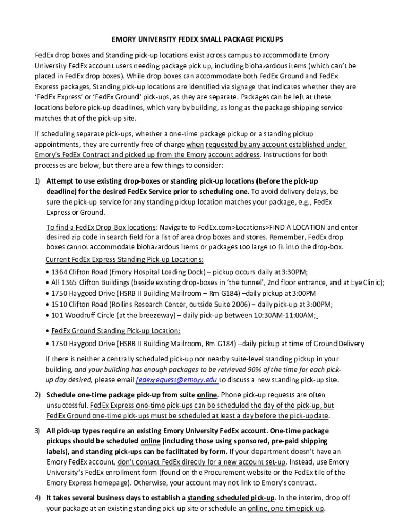 Get the free Emory University Fedex Small Package Pickups - finance emory