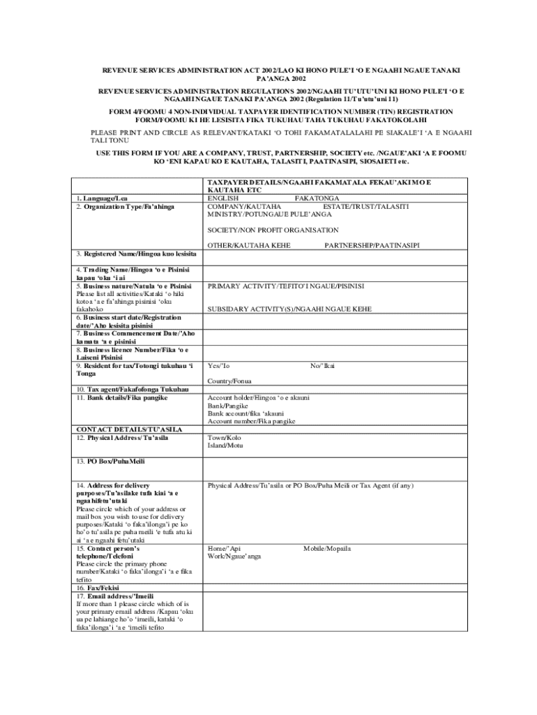 Your Comprehensive Guide to the Non-Individual Taxpayer Identification Number Form