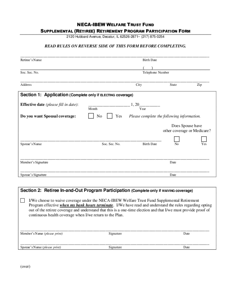 Get the free Neca-ibew Welfare Trust Fund Supplemental Retirement Program Participation Form