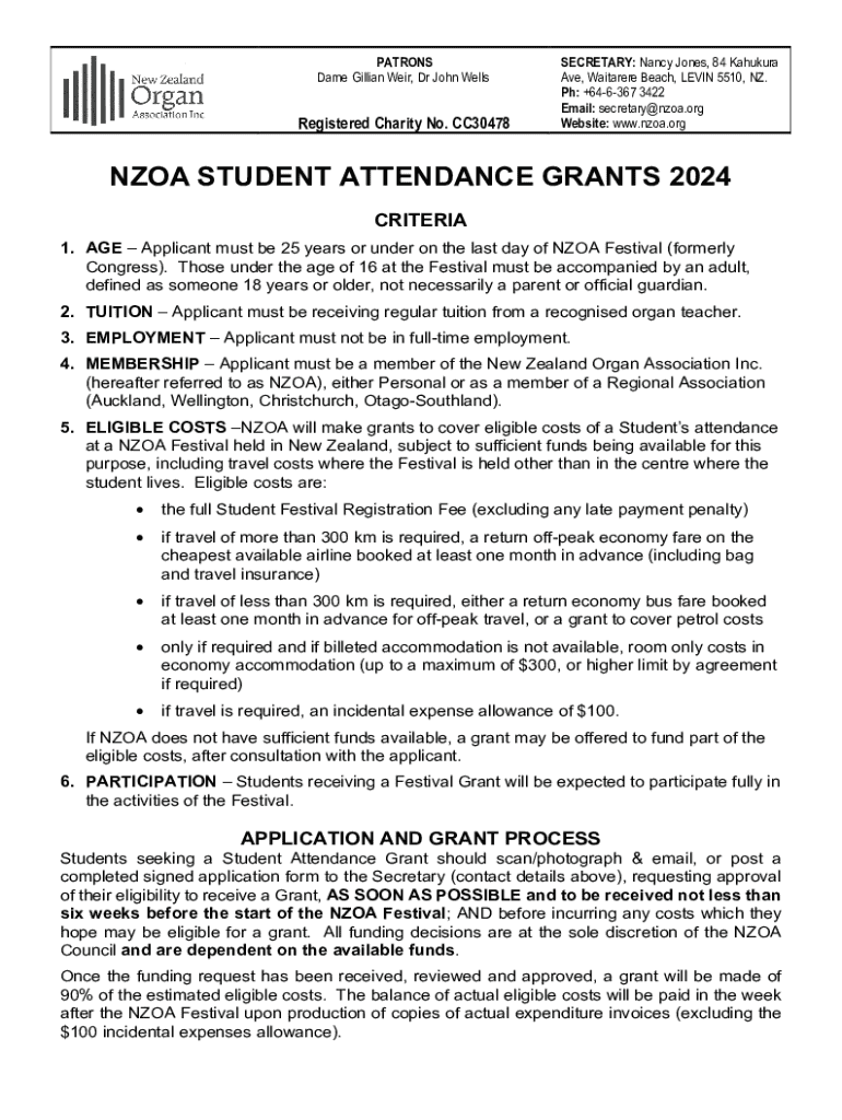 How to fill out nzoa student attendance grant?