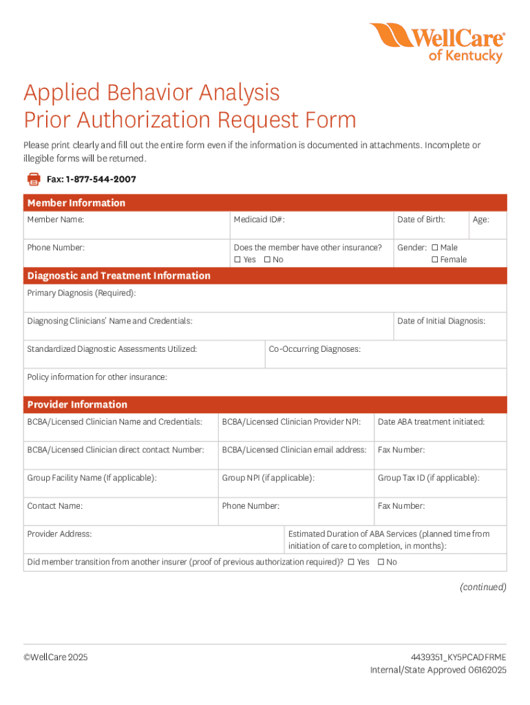 Get the free Applied Behavior Analysis Prior Authorization Request Form. 4439351KY5PCADFRMEFinal