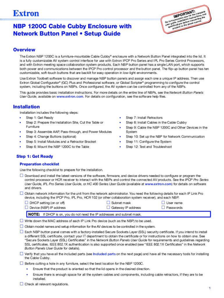 Identifying additional supporting tools, such as network button panels that complement the NBP 1200C setup, can enhance the overall user experience. Related resources, including instructional videos and user testimonials, can provide further insights into selecting and managing your ideal cable cubby configuration.