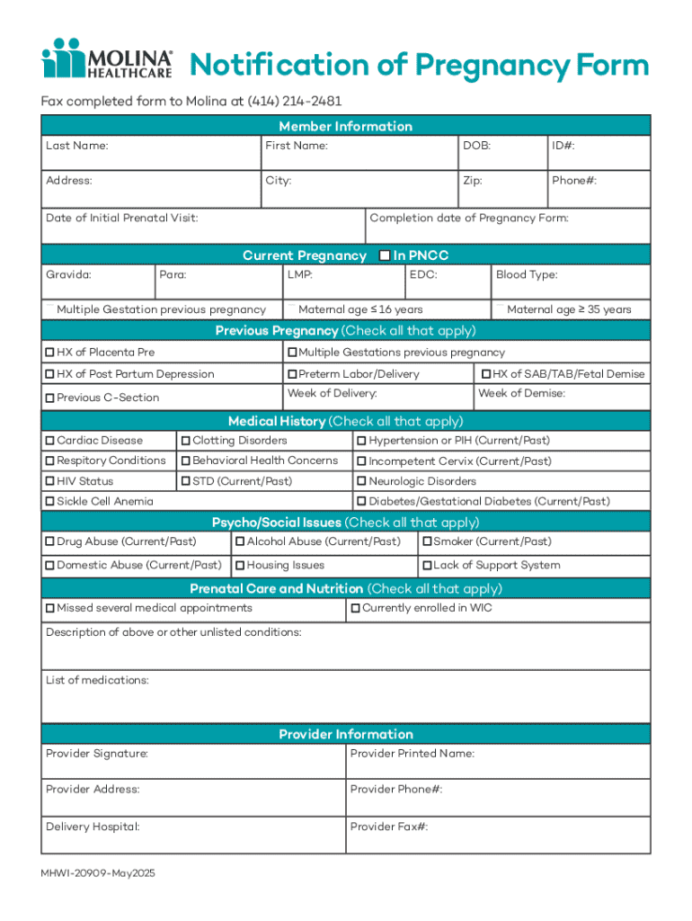 Get the free Notification of Pregnancy Form - Molina Healthcare