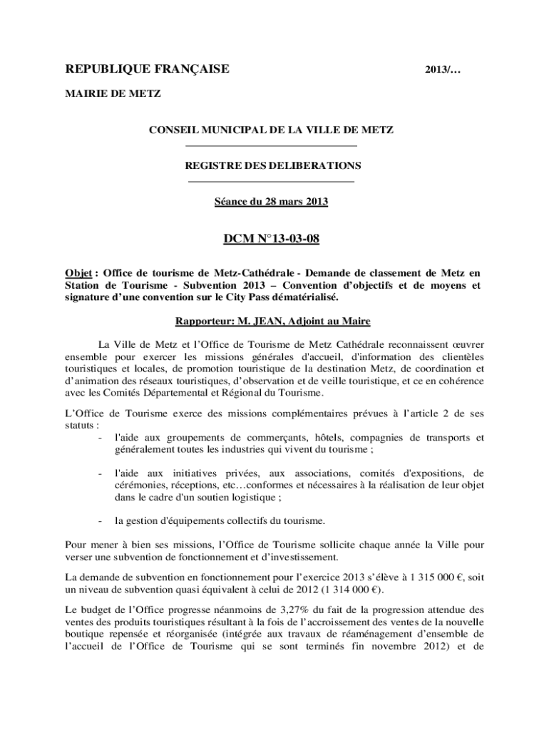 Obtenir le gratuit Objet : Office de tourisme de Metz-Cathdrale - Demande de classement de Metz en