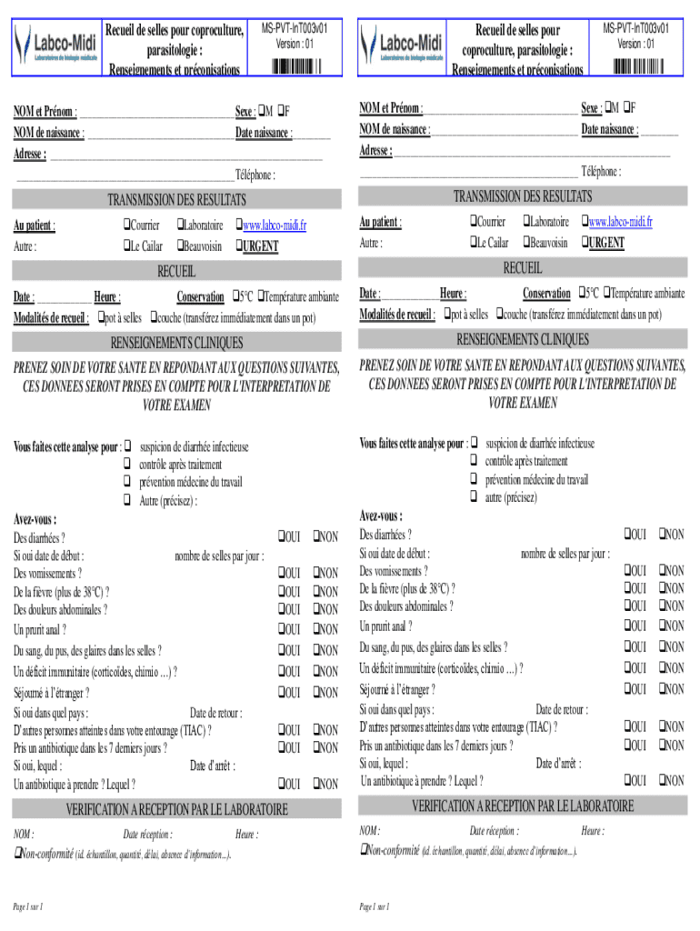 Obtenir le gratuit Objectif: Dcrire la ralisation d'un recueil de selles ou ... - NET