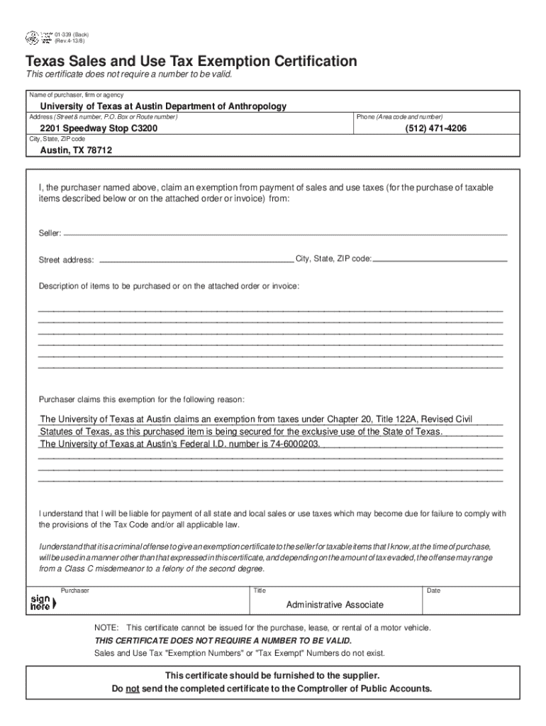 Get the free Tax Exempt Information - Purchasing Office