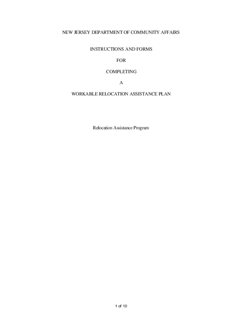 NEW JERSEY DEPARTMENT OF COMMUNITY AFFAIRSINSTRUCTIONS AND FORMS FOR COMPLETING A WORKABLE RELOCATION ASSISTANCE PLANRelocation Assistance Program1 of 10Instructions for Completing a Workable Relocation