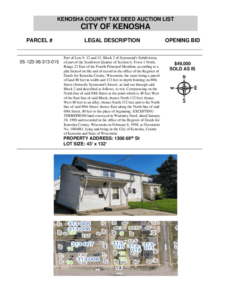 Get the free Kenosha County, Wisconsin - Live Tax Deed Sale, 15 Deeds