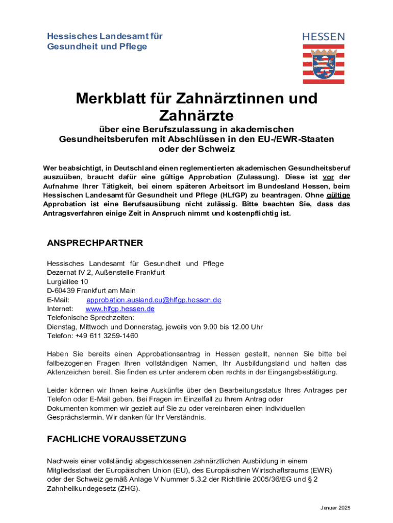 Was ist der Zweck von bundesportalapprobation als zahnrztin oder?