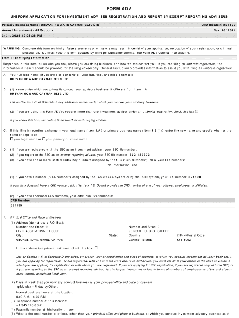 Get the free BREVAN HOWARD CAYMAN SEZC LTDForm ADV