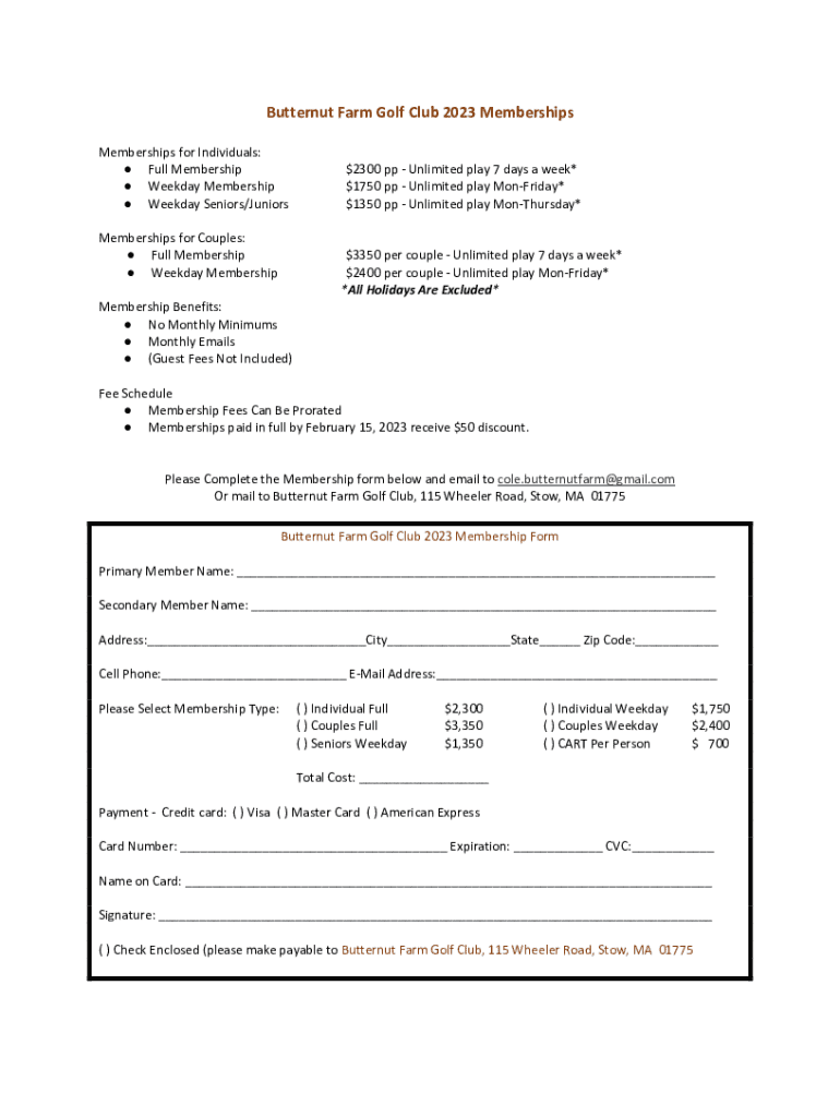 If you require further assistance with the Butternut Farm Golf Club Form or any membership-related inquiry, reaching out to the club is simple. The club’s staff is dedicated to providing support throughout the entire membership process. For immediate help, you can call their office during business hours or send an email inquiry with your questions.