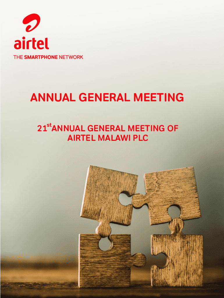 ANNUAL GENERAL MEETING st21 ANNUAL GENERAL MEETING OF AIRTEL MALAWI PLCCONTENTS Index Notice and agendaPage IAnnual Report and Financial StatementsVIIDirectors report1Statement of Directors responsibilities3Independent