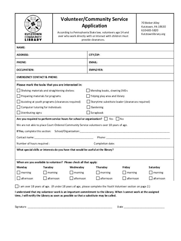 Get the free According to Pennsylvania State law, volunteers age 14 and