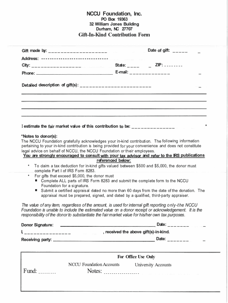 The importance of the NCCU Gift Form cannot be overstated, as it acts as the bridge between the generosity of donors and the university's mission to provide exceptional educational opportunities. With clear and detailed documentation, this form simplifies the contribution process, ensuring that each donation is comprehensively tracked and recognized by the institution.