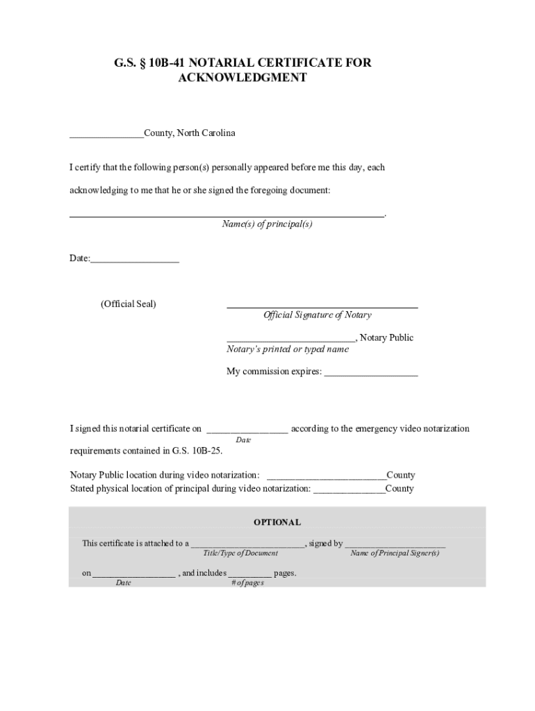 Get the free NC GS 10B-41 Notarial Certificate for Acknowledgement Form ...