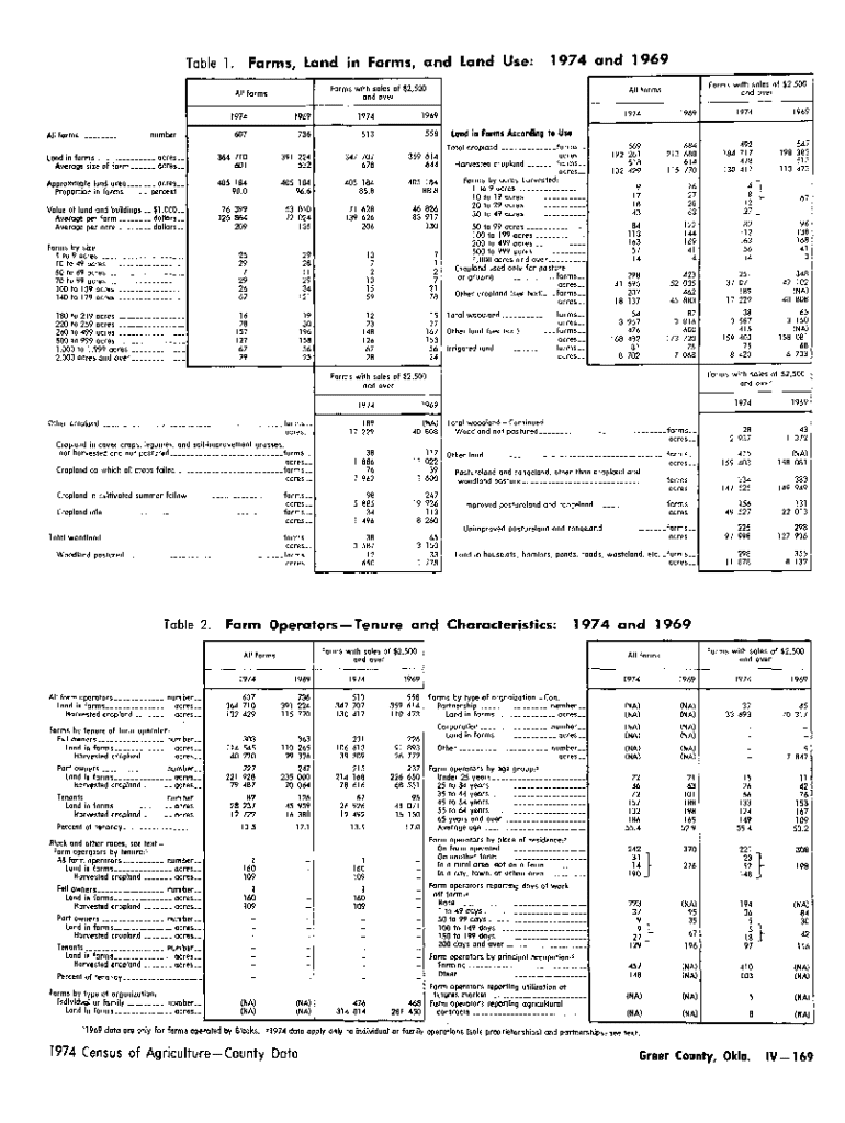 Farms, Land in Farms, and Land Use:Table 1.Farms with sales of $2,500 and overAll formsAll forms ___ number __1974 and 1969 Forms with sales of $2,500 and overAll forms19741969197419696077365135581974196919741969569