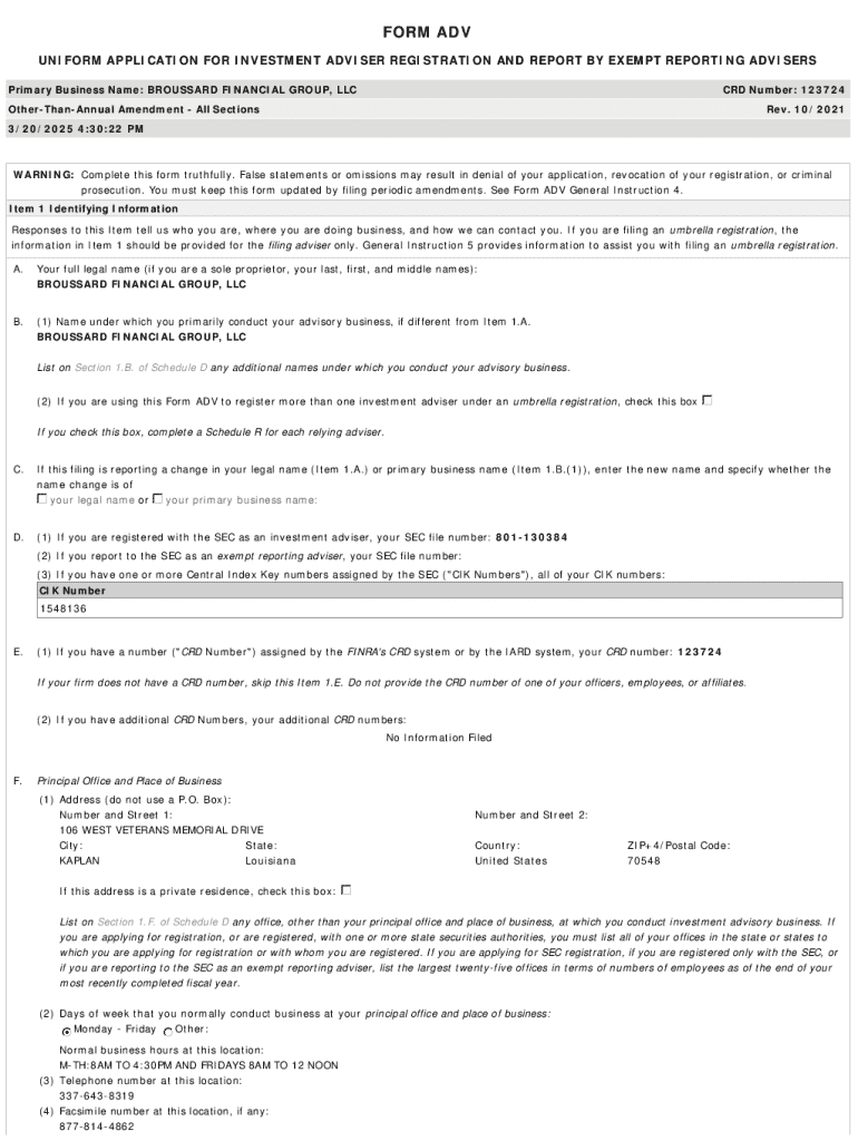 Get the free BROUSSARD FINANCIAL GROUP, LLC