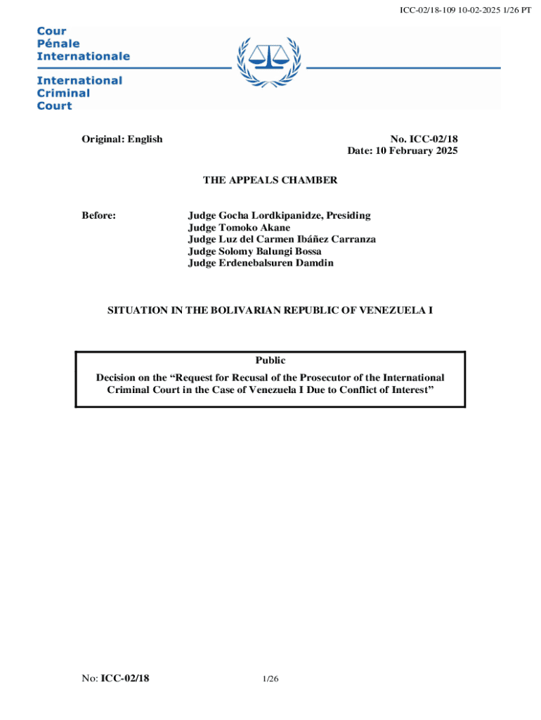 Get the free English No. ICC-02/18 Date: 10 February 2025 THE APPEALS ...
