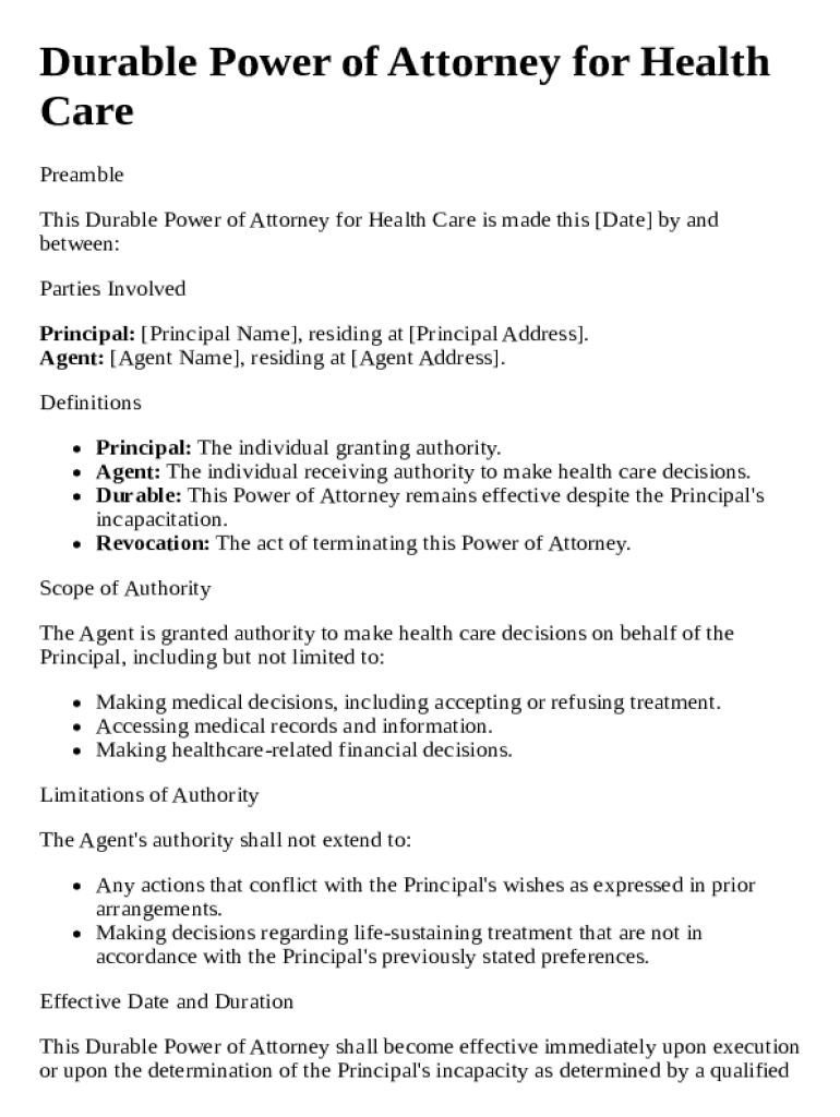 Why is a Durable Power of Attorney for Health Care Template essential?