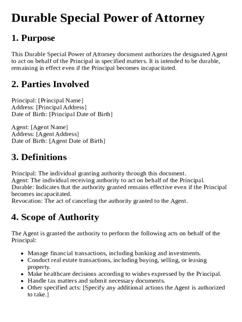 A durable special power of attorney specifies tasks an Agent can perform, ensuring critical decisions can be made when needed.