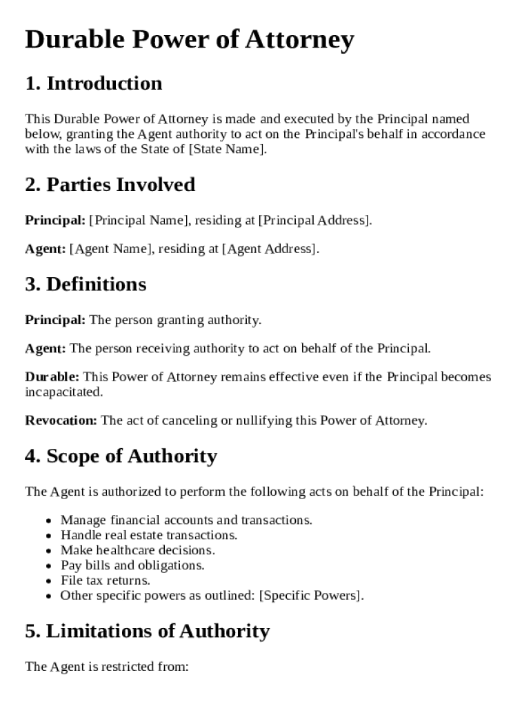 Begin by clearly identifying yourself and your chosen agent, then outline areas of authority you wish to grant.