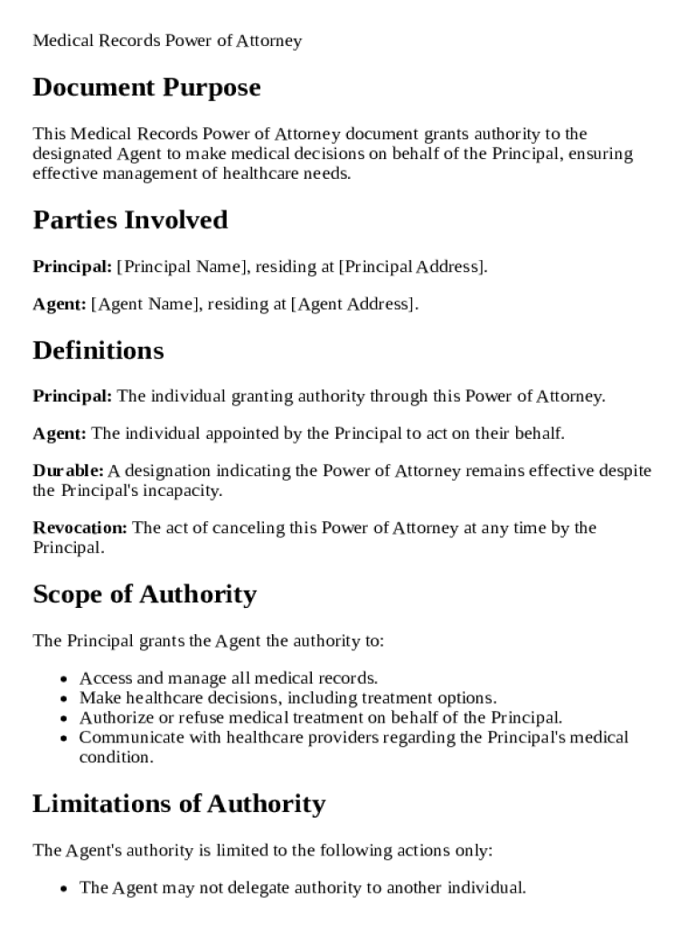 Get the free Medical Records Power of Attorney Template