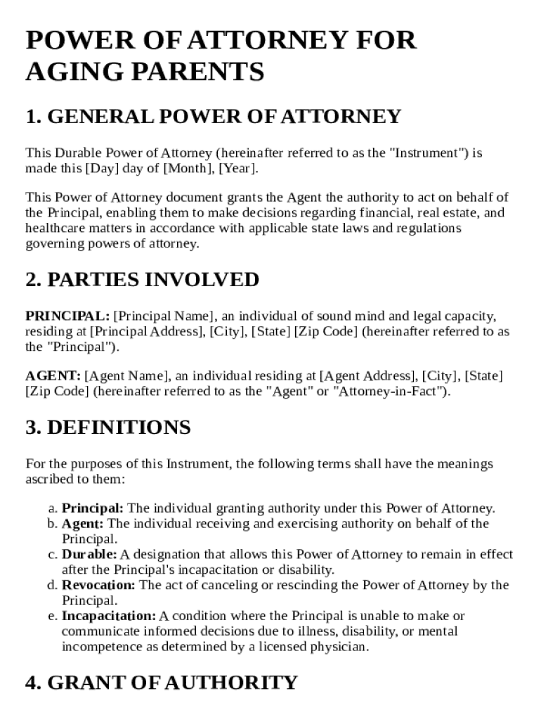 Where can I find a reliable Power of Attorney for Aging Parents Template?