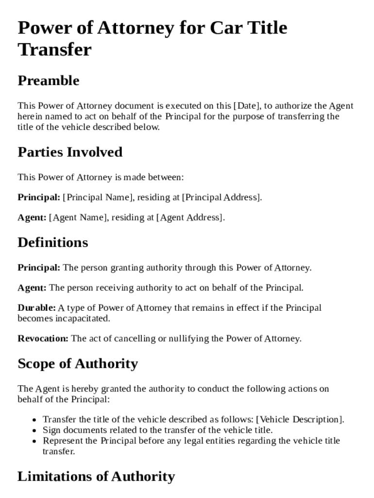 Is a Power of Attorney for Car Title Transfer Template legally binding?