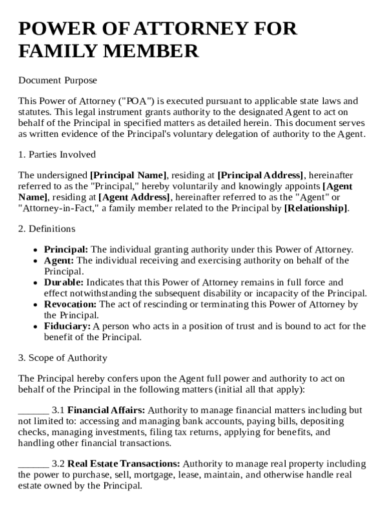 Where can I find a reliable Power of Attorney for Family Member Template?
