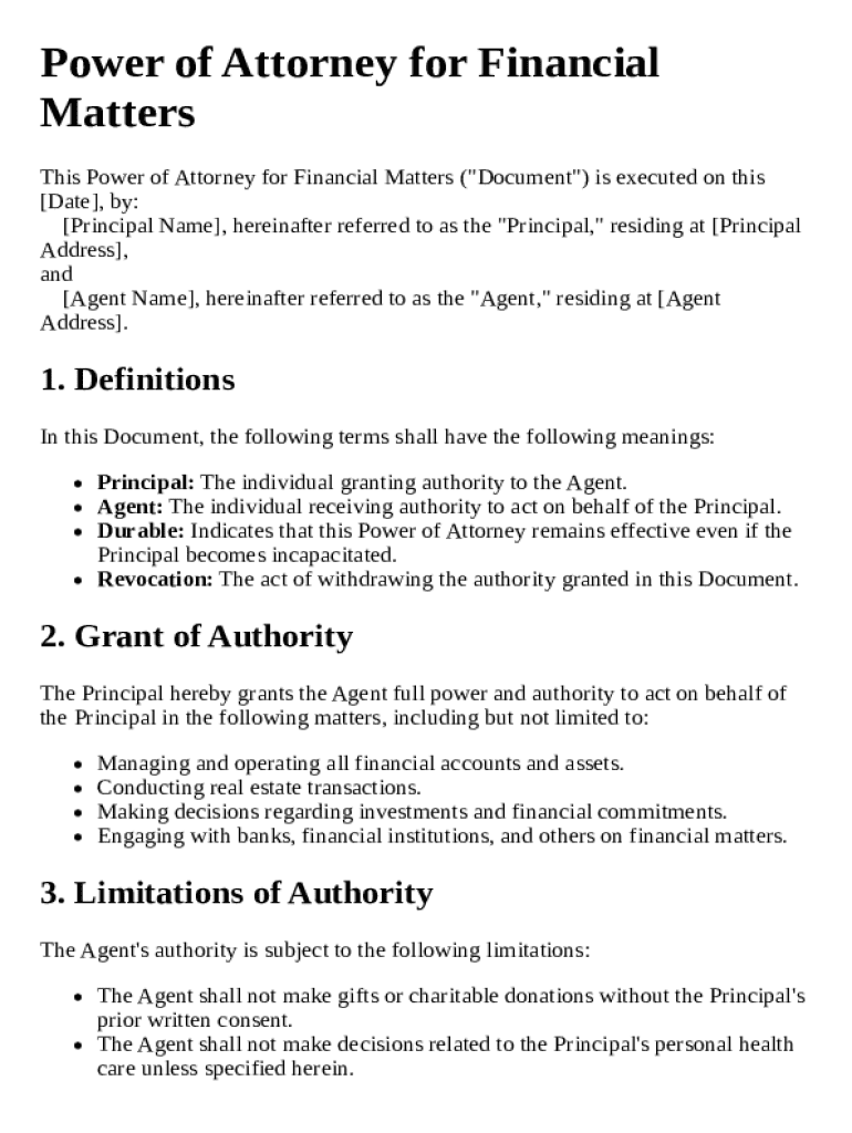 Get the free Power of Attorney for Financial Matters Template