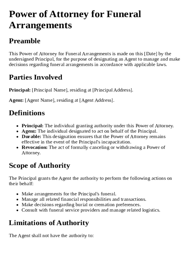 Are there legal requirements for a Power of Attorney for Funeral Arrangements Template?