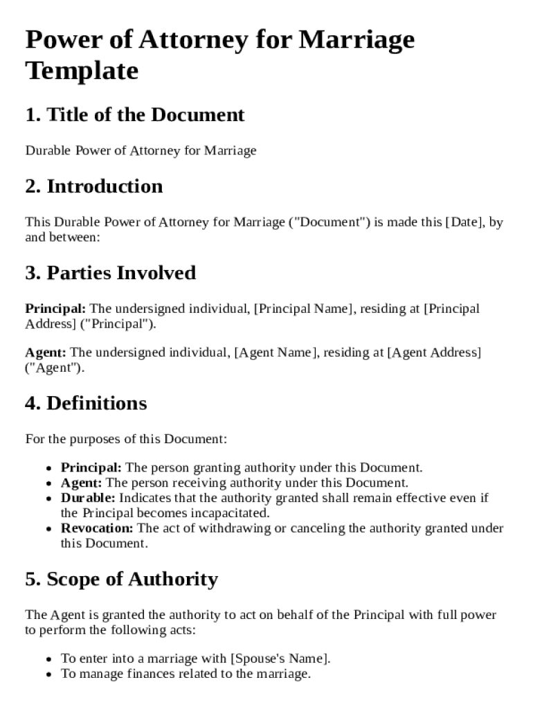 Get the free Power of Attorney for Marriage Template