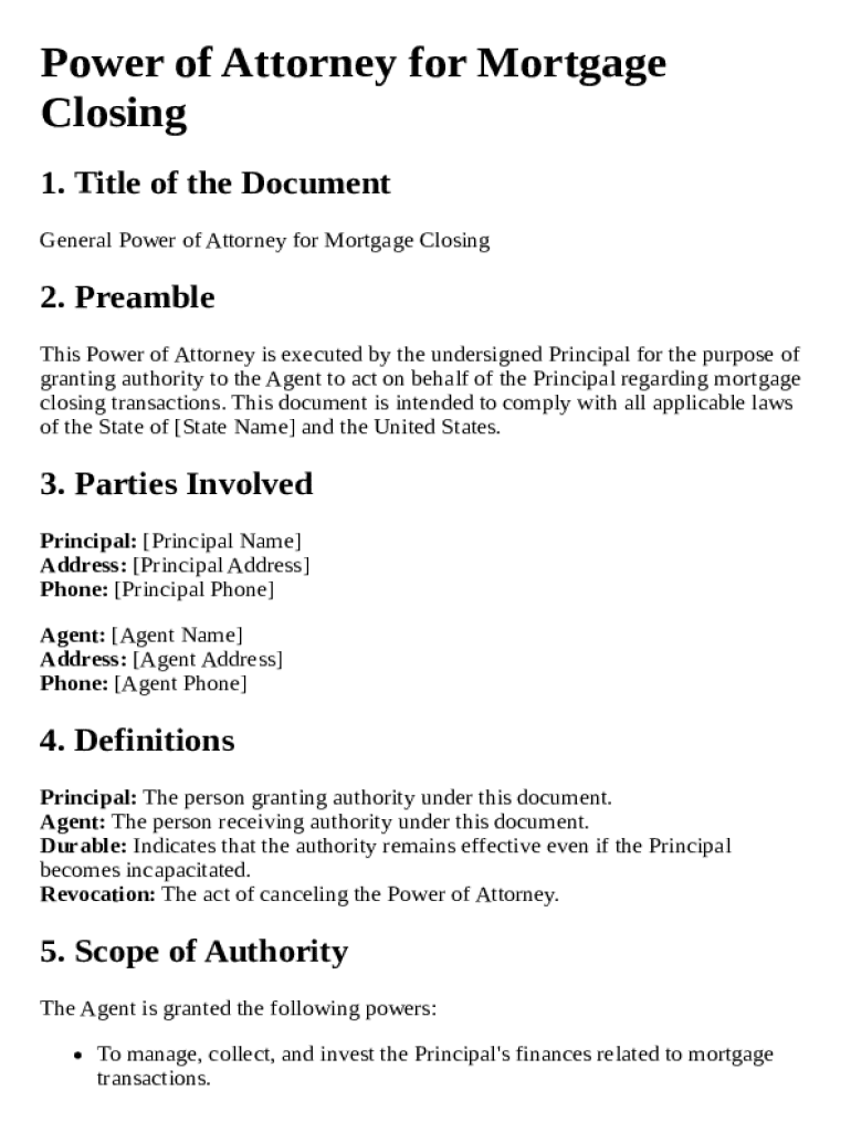 Comprehensive Guide to the Power of Attorney for Mortgage Closing