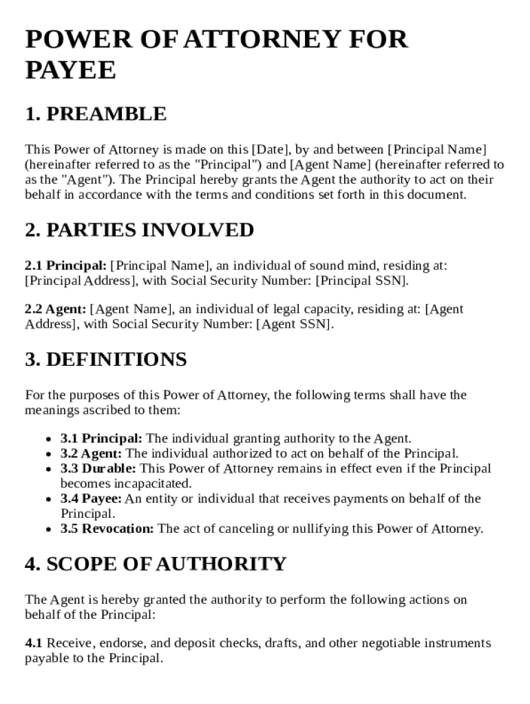 Get the free Power of Attorney for Payee Template