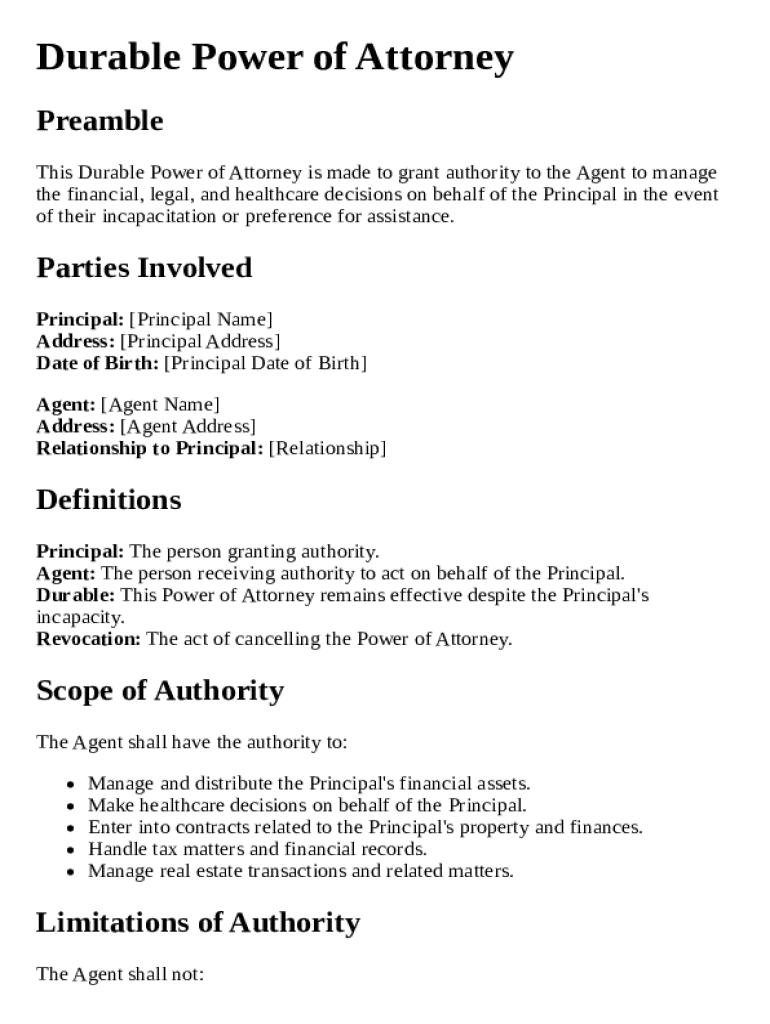 The scope of authority can vary widely based on the principal's wishes. It can cover financial management, healthcare decision-making, and even real estate transactions.