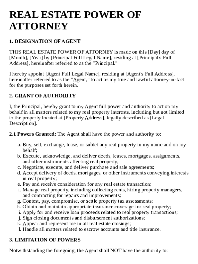Get the free Real Estate Power of Attorney Template
