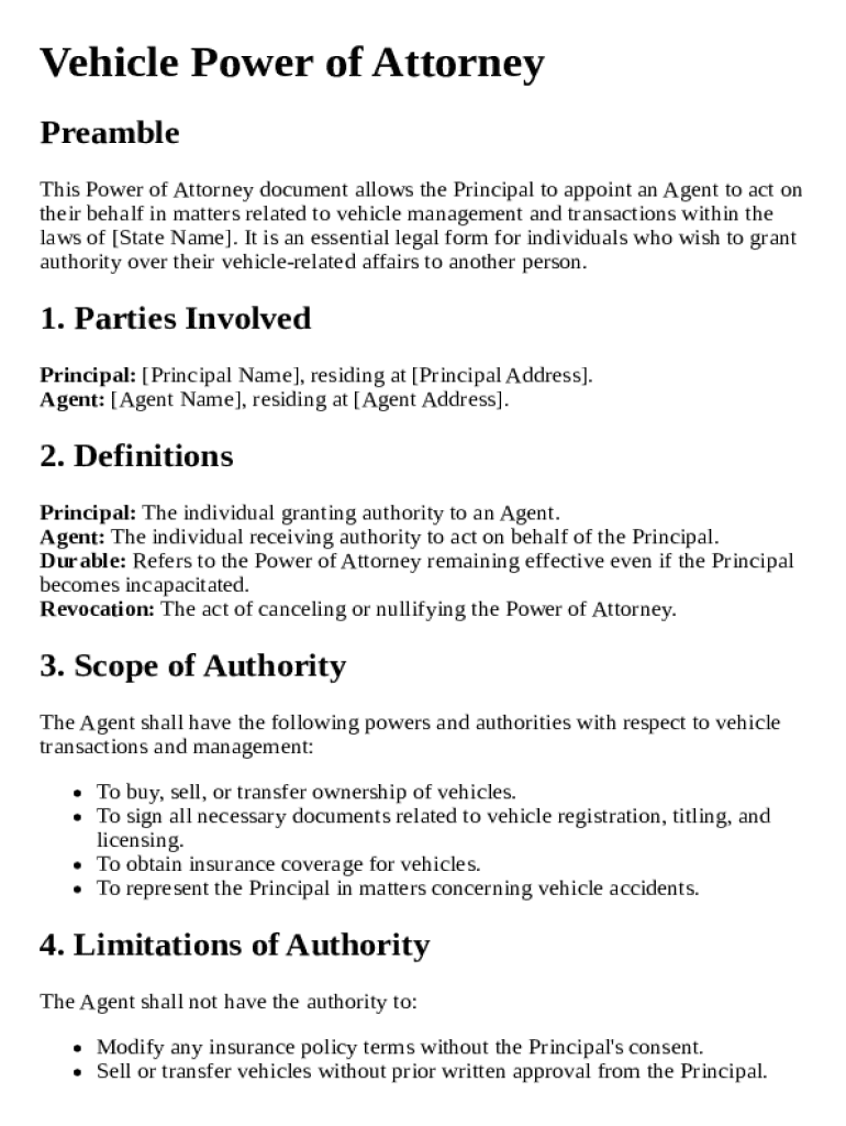 What essential elements should be included in a Vehicle Power of Attorney Template?