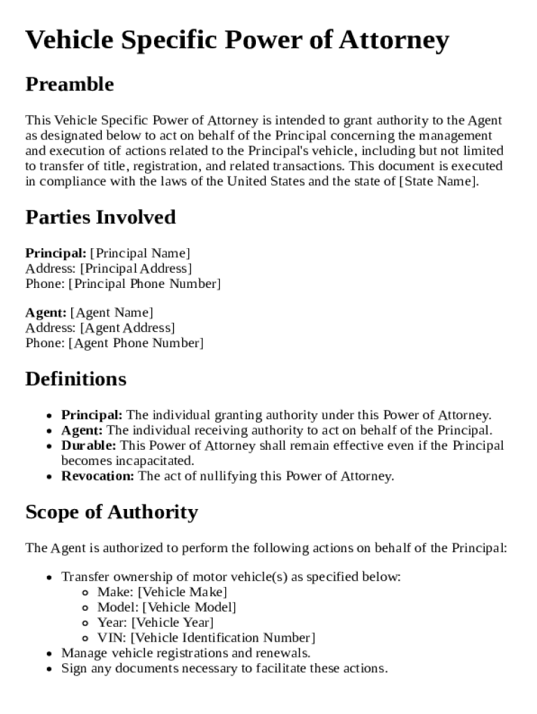 Vehicle Specific Power of Attorney: Comprehensive Guide