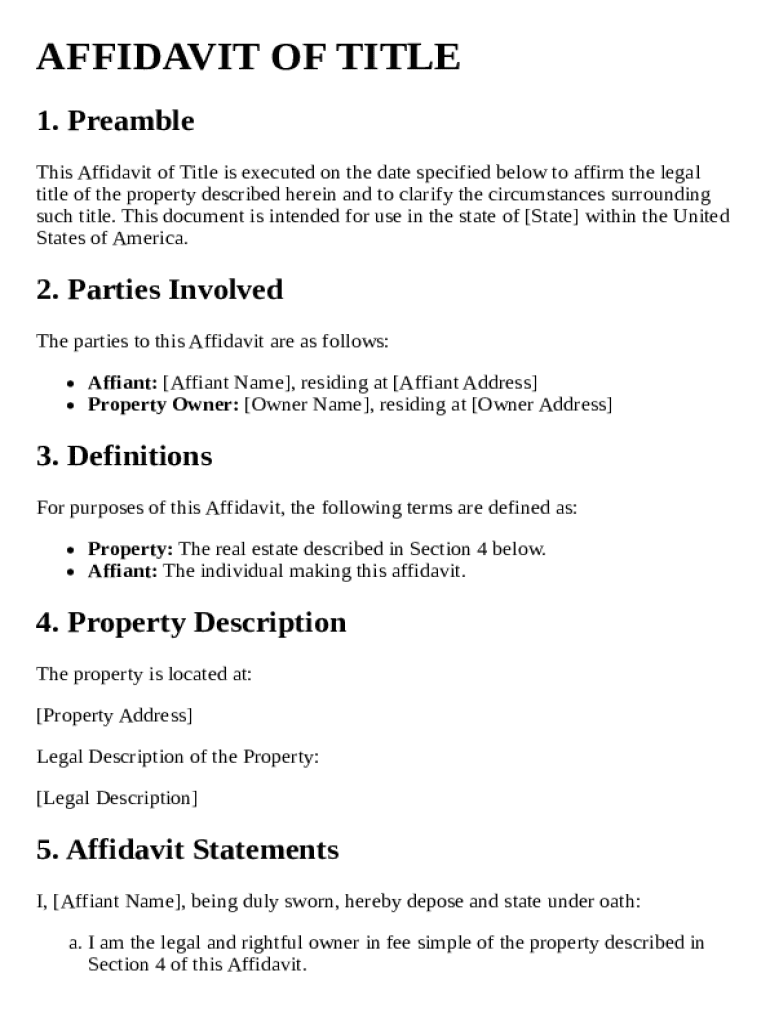 An affidavit of title template is a legal document that certifies the ownership of a property and its free status from liens or encumbrances, typically used in real estate transactions.