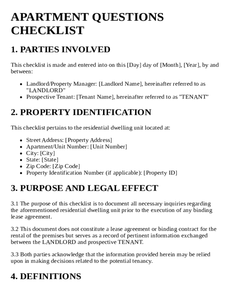 How to fill out the apartment questions checklist template