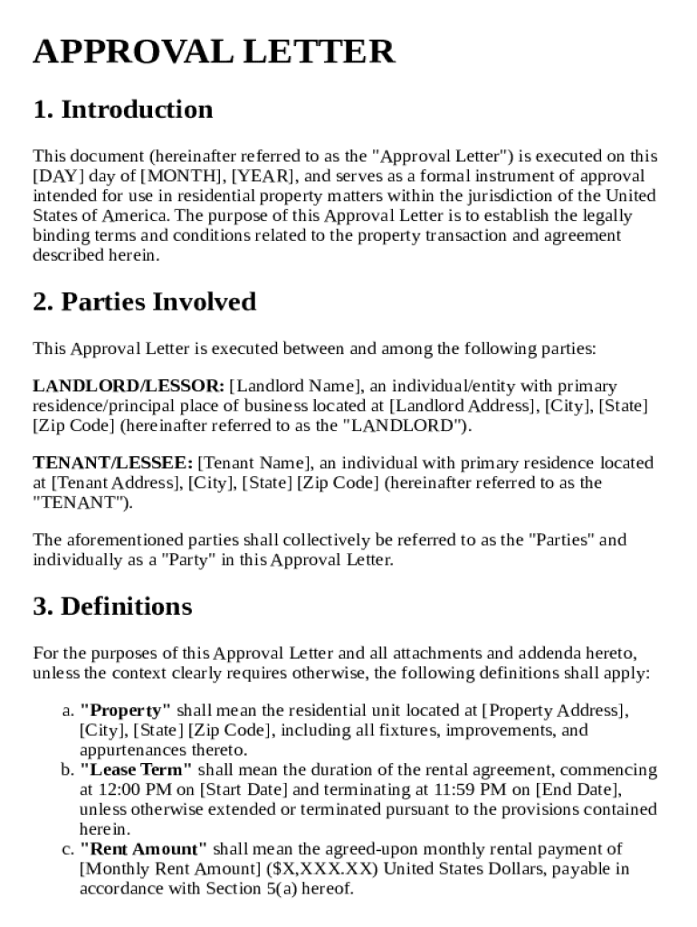 An approval letter is a formal document that signifies acceptance or endorsement of a proposal or request, usually in legal or real estate contexts. In property transactions, it plays a crucial role in solidifying agreements between landlords and tenants, confirming that conditions have been met for a lease to commence. Understanding its legal implications is vital, especially within the framework of U.S. law, where specificity and legality can significantly impact enforceability.